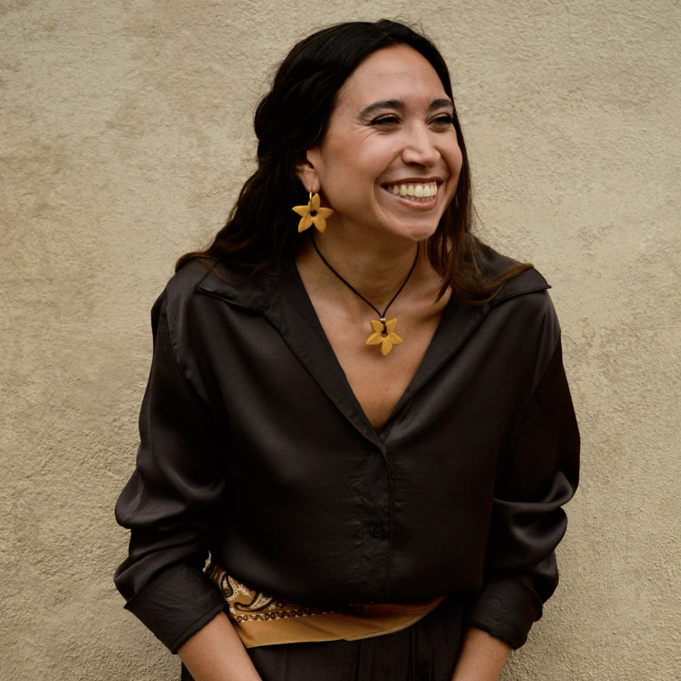 Pendientes con aro de acero inoxidable dorado que atraviesa una flor de vidrio de Murano. Su forma inspirada en el lirio y la textura de aguas en el vidrio crean una pieza ligera, artística y llena de movimiento. Cada flor refleja la luz de forma distinta, haciendo de cada pieza única.
